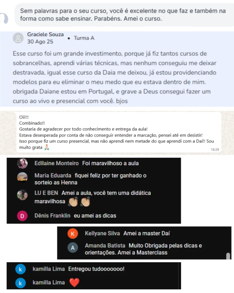 Nesta Masterclass “Tudo Sobre Henna”, vou compartilhar segredos exclusivos, técnicas perfeitas e todos os detalhes para você criar resultados naturais, duradouros e impecáveis — que vão encantar suas clientes e transformar seu atendimento.